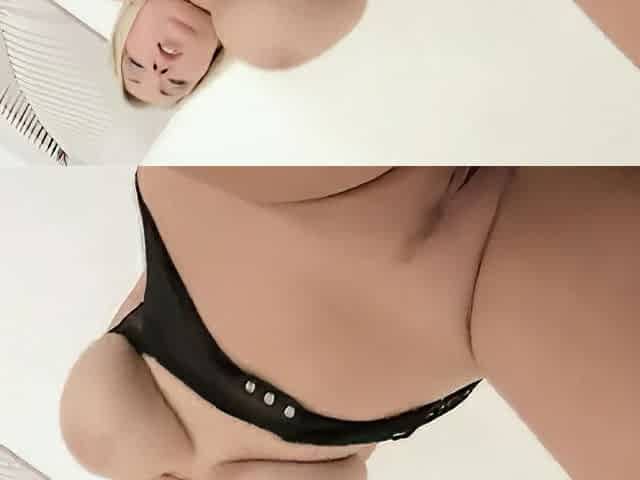 Blonde plays with her super saggy tits