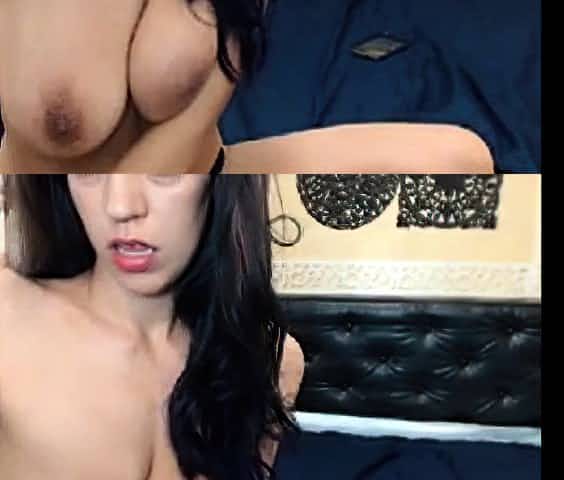 Brunette webcam babe with big saggy tits teasing solo