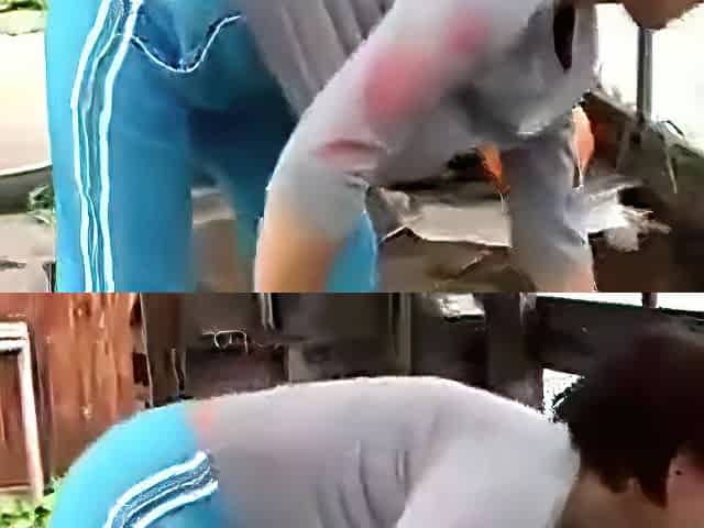 Hairy saggy granny drilled outdoor