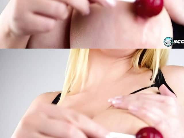 Beautiful BBW blonde Holly Garner is sucking her red candy on cam