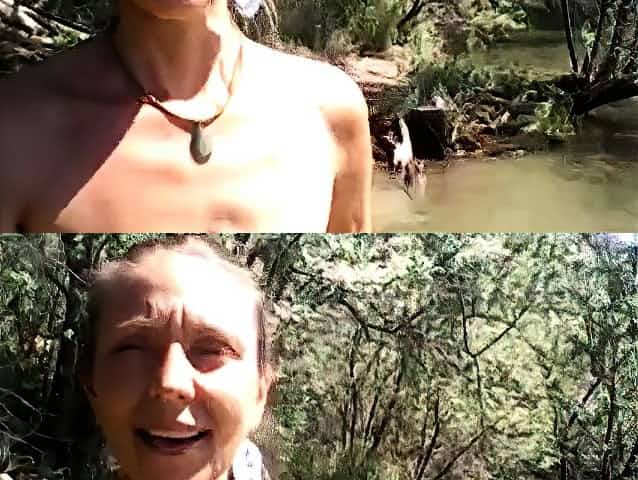 Busty saggy tit babe gets naked outdoors