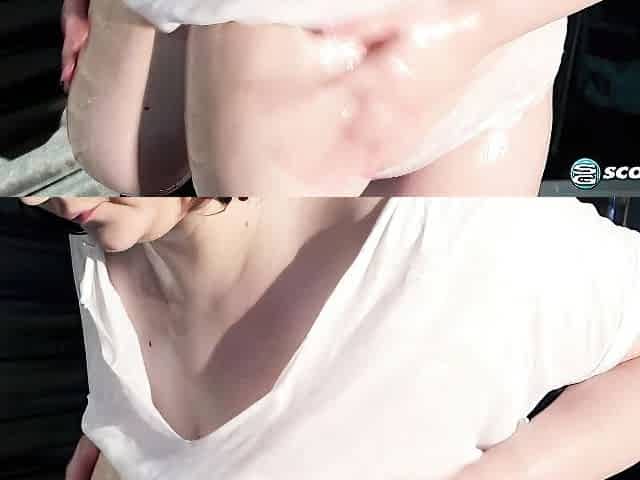 Stunning oiled natural boobies of a lusty blonde Kitty Cute