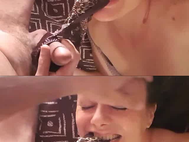 Fucking Her Mouth And Cum Shoot On Her Satin Panties