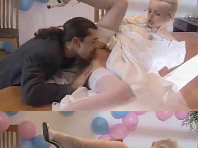 Fuck and suck in lovely white satin and lace suspender belt