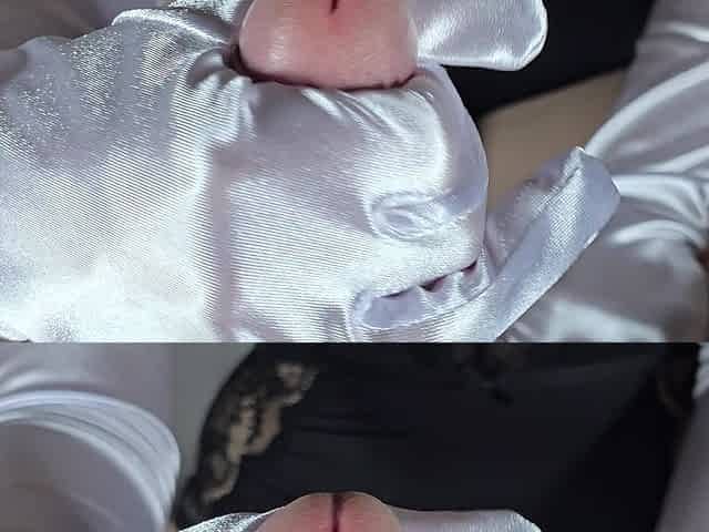 White satin glove Handjob HD