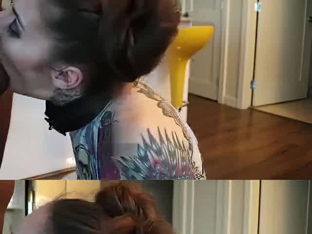Ttowierte Schlampe lutscht den Neger tief