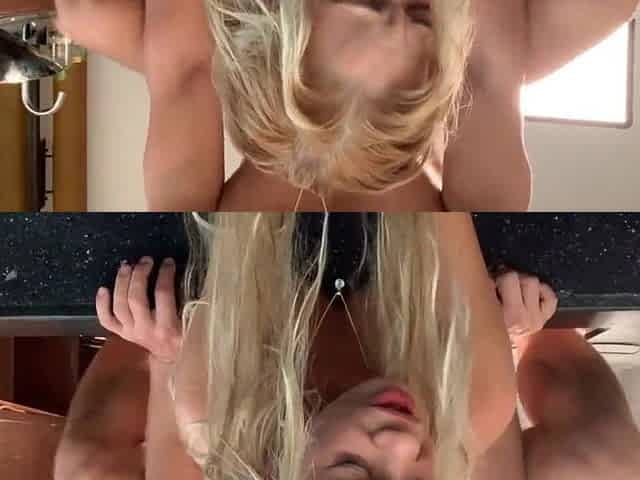 Skinny blonde nympho screams with pleasure while getting double banged