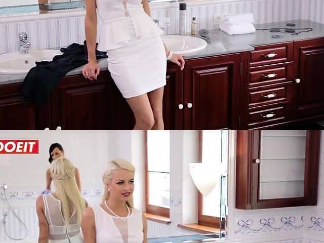 Hot slim blonde fucked hard after lesbian friend blocked