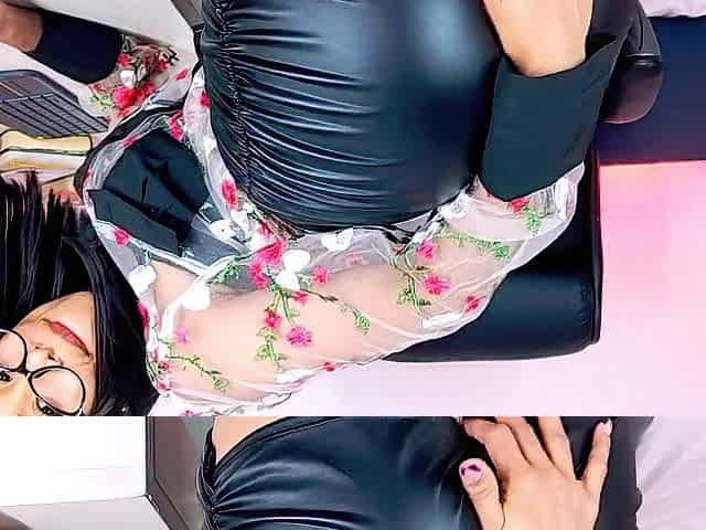 Secretary rubbing her tits and Masturbating