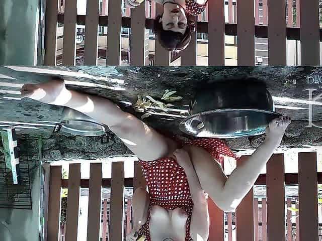 Maid is cleaning the ballet class. Soaked costume, masturbation. Full clip.