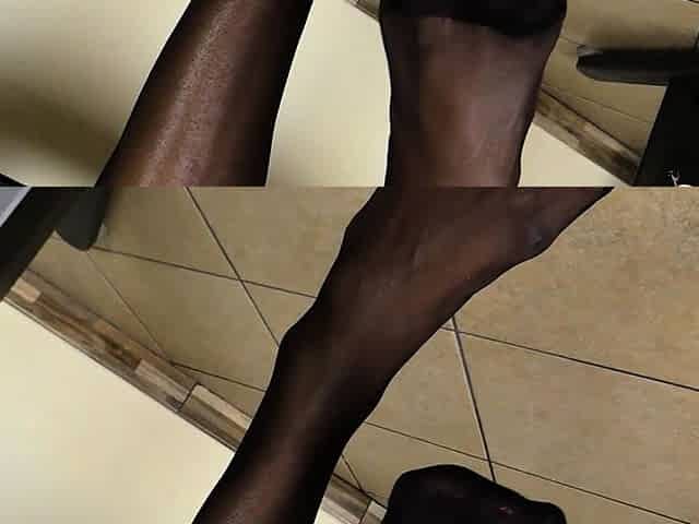 Ebony secretary squirts in stockings