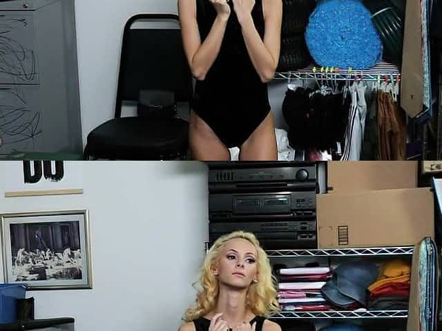Blonde teen thief suspected and fucked by a security guy