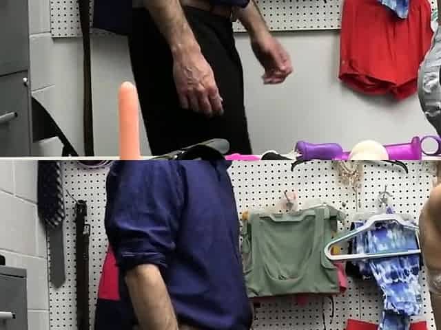 Dildo stealing big tit ends on security guards cock