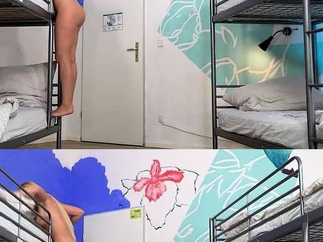 Petite blonde fucks the hostel security guy after losing