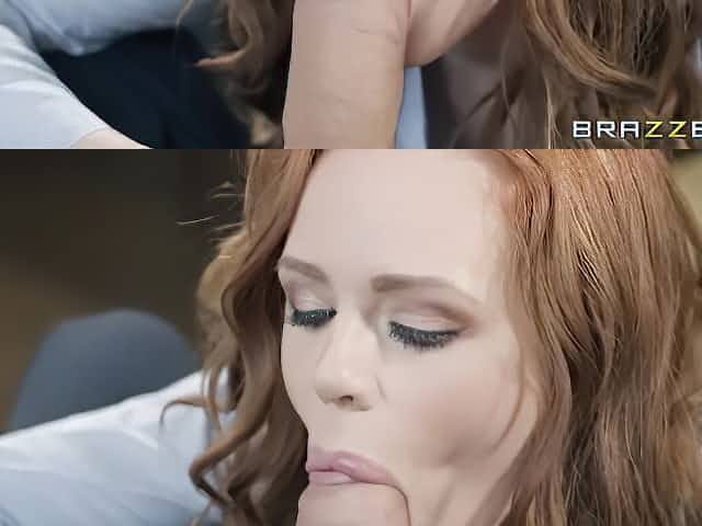 Seduced young secretary Kylie Quinn nicely sucks on the knees