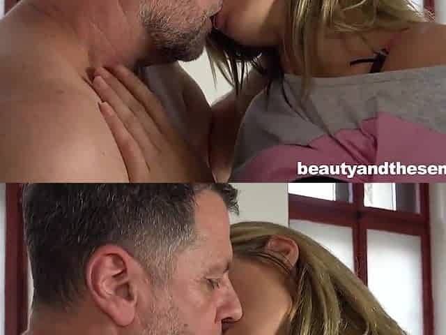 Virgin Alesya being enticed by a porn actor