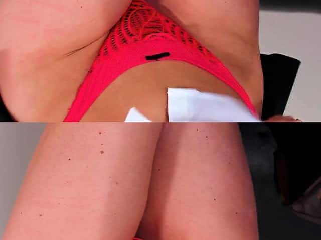 Redhead babe satisfies self by eating her doctors pussy