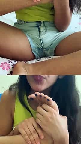 girl licking her feet (Self toe Sucking)