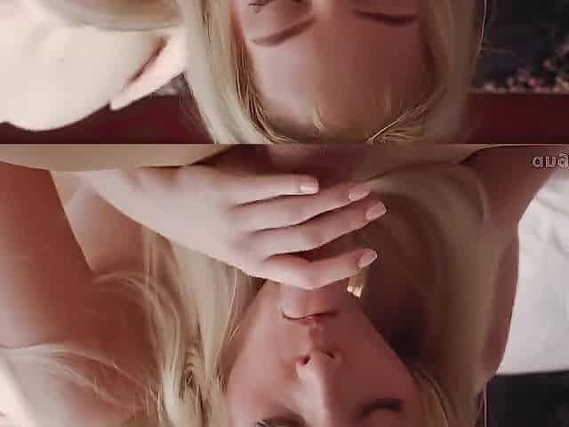 Watch as hot blonde Oxana Minsk strokes her big tits and pussy in 4K