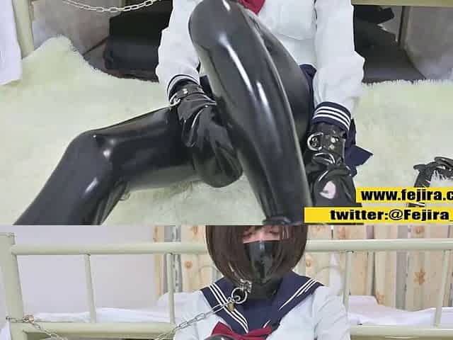 Fejira com Heavy latex and chain self-bondage orgasm