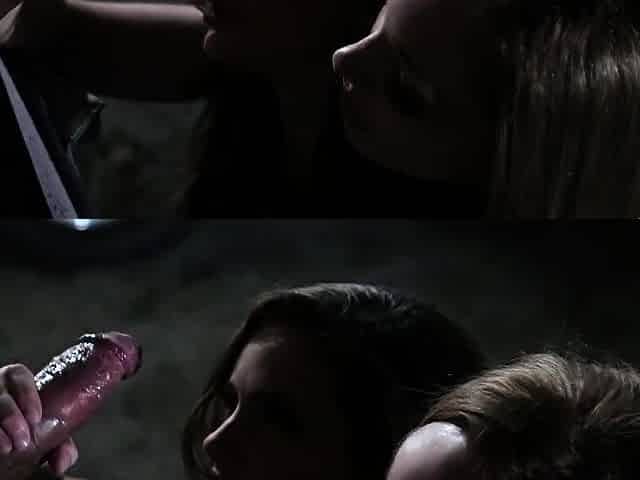 Two college babes giving handjob POV