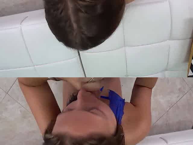 Busty brunette sucks and licks big cock in a close up