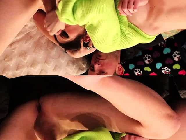 Teen fingering pussy while licking ass