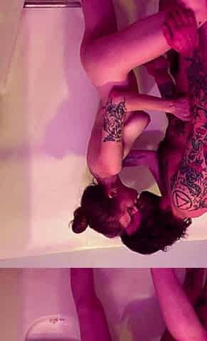 Tattooed vixen worships her lover's small frame with tongue
