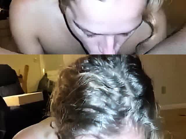 Girl blowjob to creamy cum in mouth from 2 angles
