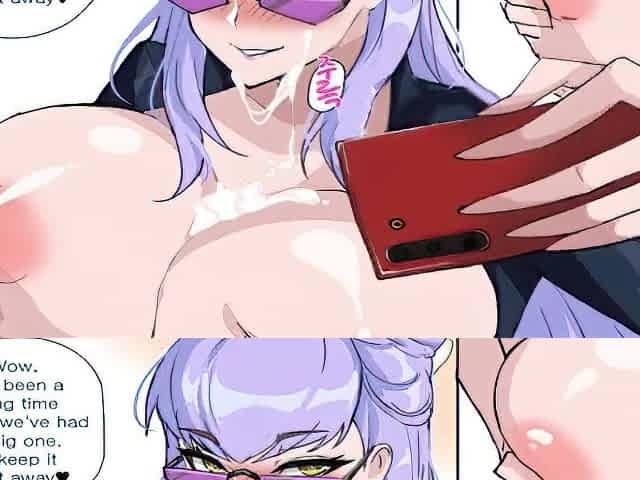 Animated with large breasts gets rubbed
