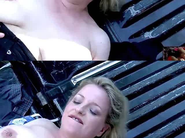 Mature blonde getting fucked outside the store