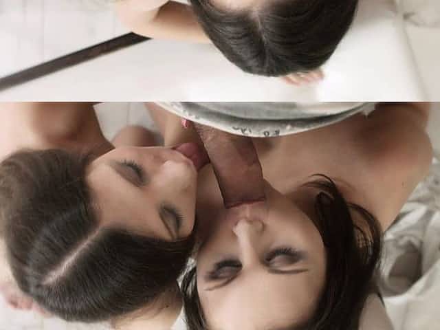 hot mom shows her sexy daughter the art of sucking hard cock