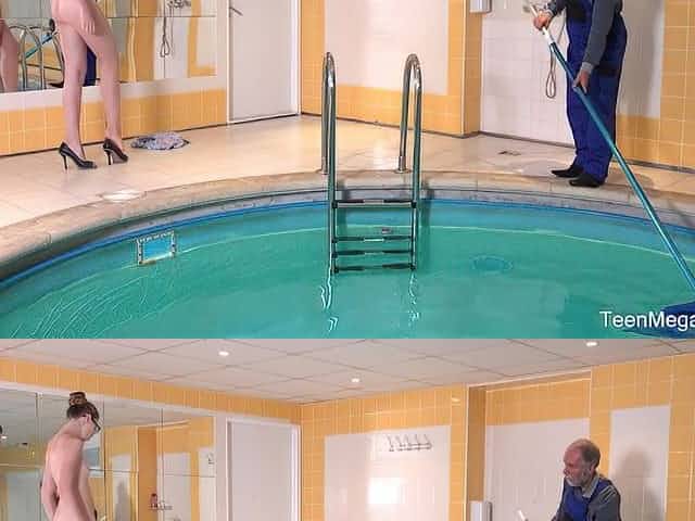 Fresh babe and old pool boy