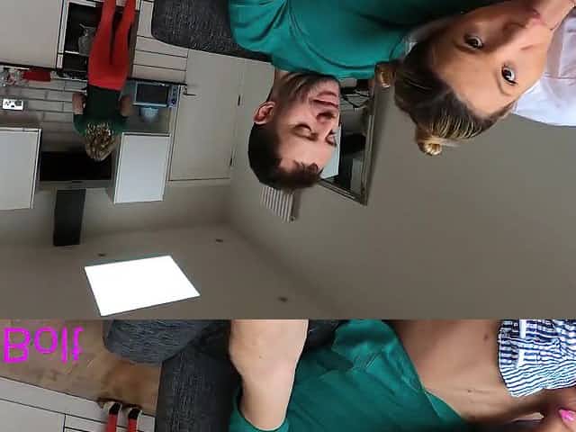 Risky Suck Off on Couch while their Pal Cooks. Giant Spunk at the end on Ella Bolt Face