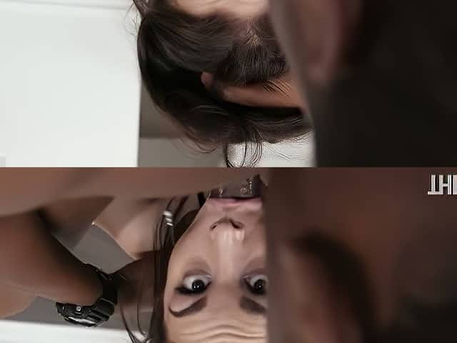 Titless brunette sex doll with tight big ass Emily Eve blows black monstrous dick