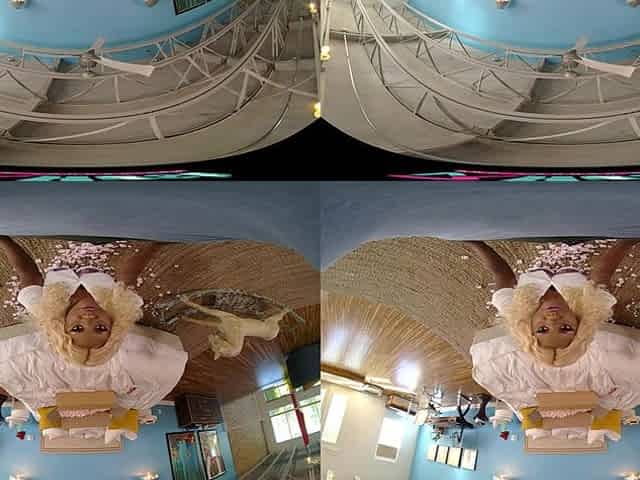 Stunning redhead with big natural tits rides her sex doll in virtual reality