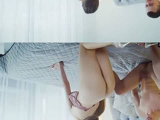 Attractive and sexy amateur in full dress is so sweet during threesome bed sex