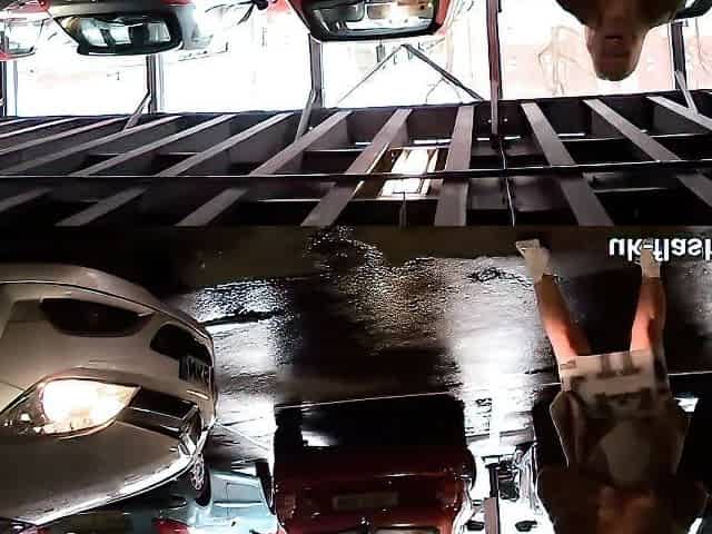 Nude girlfriend fucking gear in car. Amateur public nudity