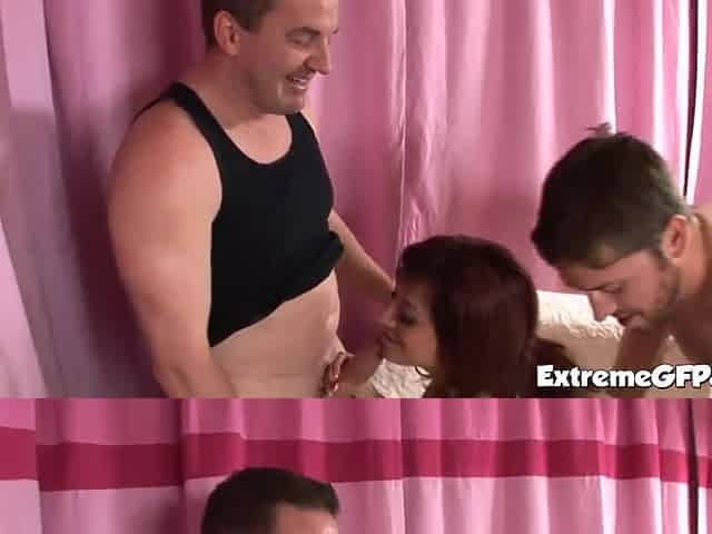 Redheaded threeway slut sucks and fucks hard in POV