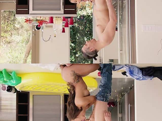 Hot busty teen banged by a dad's best friend in a kitchen