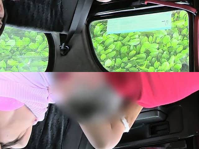 Dude grabs tits to female fake taxi driver