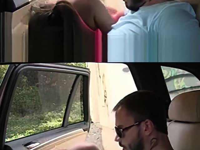 Brunette in lingerie bangs in fake taxi