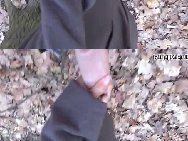 Babe fucking fat cock in public forest