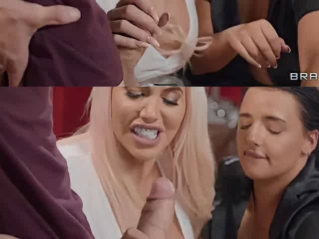 Lucky black stud fucks sizzling blonde babes Karla Kush and Naomi Woods in threesome