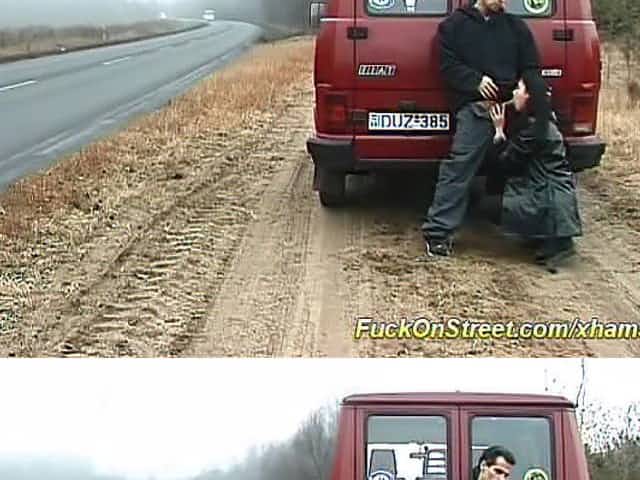 Slut stops car for fucking