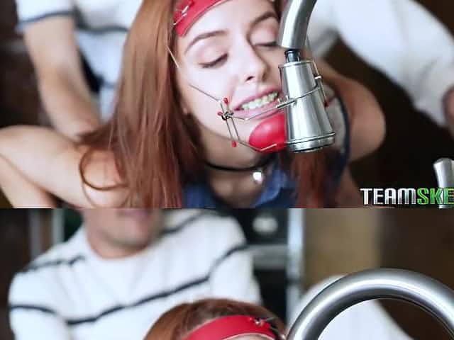 Ginger girlfriend in braces Cleo Bardot got stuck and fucked