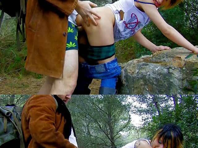 Wanton teen bitch gets doggy fucked in the forest rough