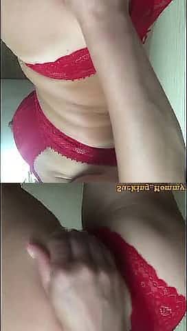 mother I'd like to fuck in Red Underware Rubs her Twat