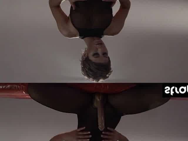 A hot blonde from Germany showing off her moves on two poles
