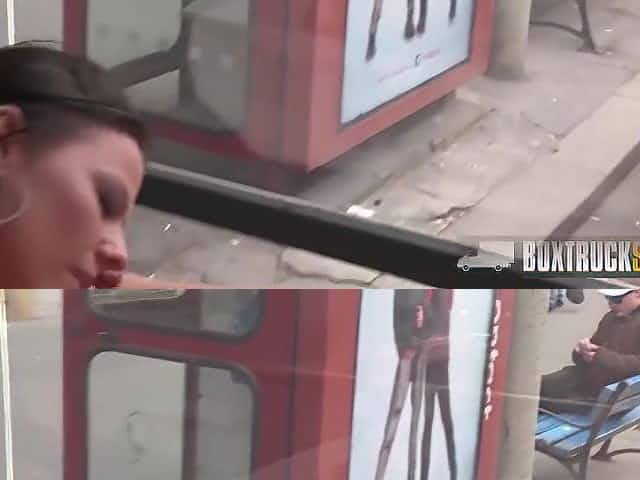 Breasty blond suggests her cunt for free and gets drilled throughout a car window, by random males